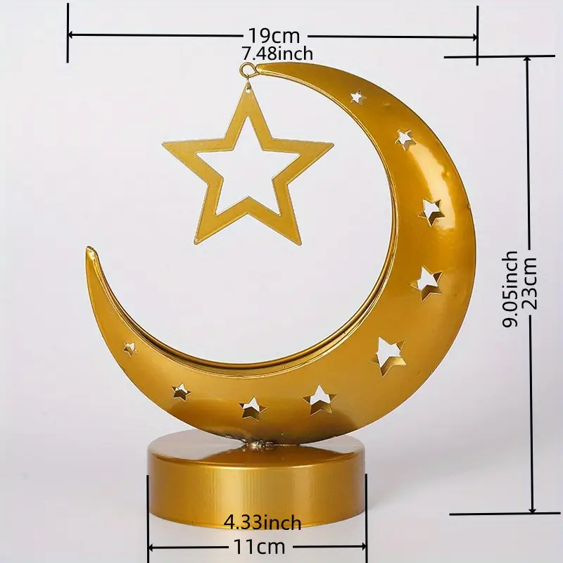 مكون من 1 قطعة أضواء نجوم القمر الذهبي لعيد مبارك، أضواء الجنية لتزيين مهرجان رمضان وعيد الفطر الإسلامي، وتشكيل الجو ومصباح الطاولة، لتزيين حفلات الزفاف وغرفة النوم